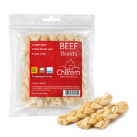 Discover our Braided Beef Skins, the perfect high-protein treat for your furry friend. Free from additives and preservatives, these chews are an excellent choice for pet owners seeking a natural, healthy option. Low in fat, they're ideal for dogs with those on a weight management plan. Available in two sizes, the larger braids are perfect for powerful chewers, while the smaller braids are great for small breeds. Treat your dog to the best with our Braided Beef Skins.